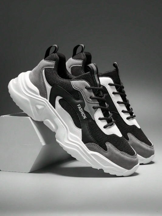 Men’s Color Block Letter Print Casual Sneakers