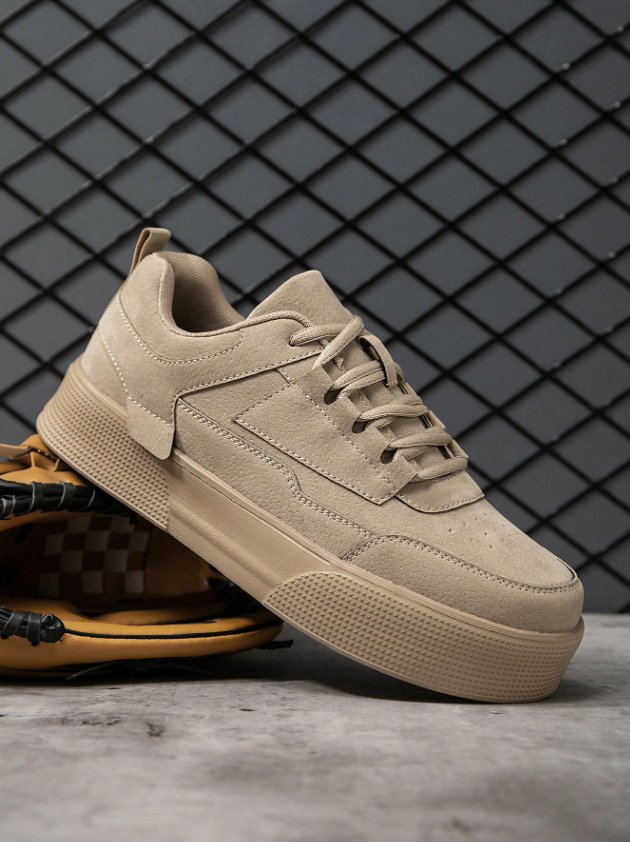 Men’s Khaki Vintage Casual Patchwork Lace Up Low Top Sneakers